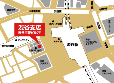 JR渋谷駅西口、バスターミナル前 渋谷三菱ビル7階 |