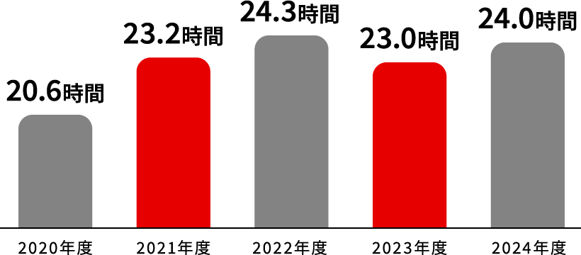 当社では、柔軟な働き方を推進しており、フレックスタイム制・時差勤務制(勤務時間の制度)、在宅勤務制度(勤務場所の制度)などを導入しています。