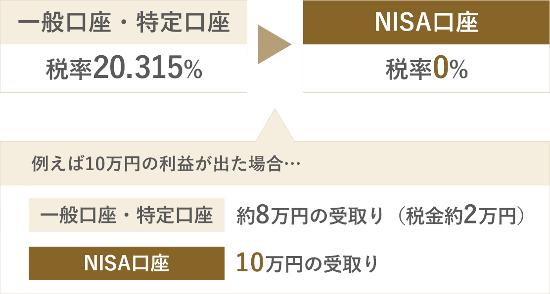 NISAを利用すれば、対象商品の投資に対する利益が非課税になります。