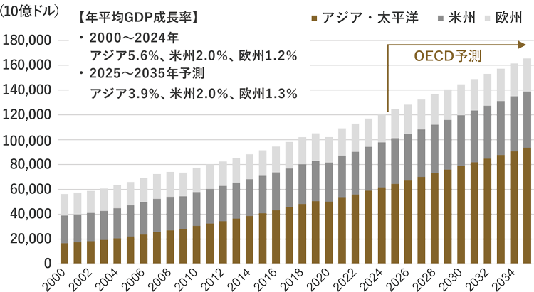 世界の地域別実質GDP推移と将来予測