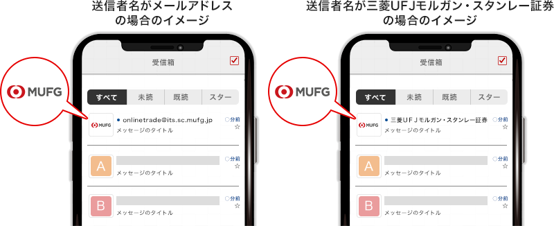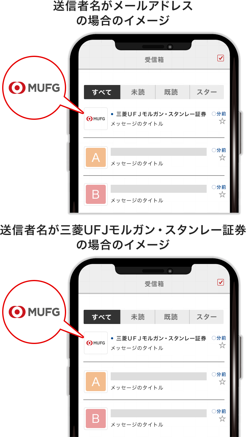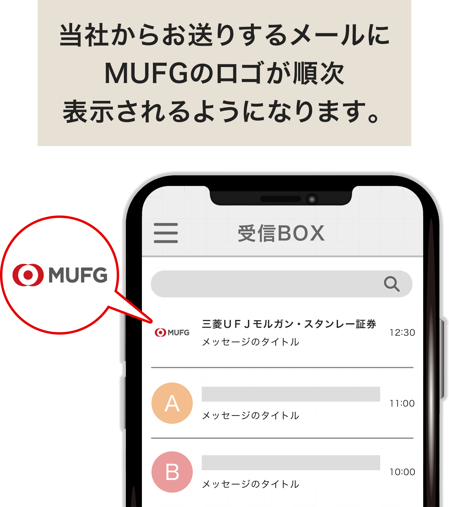 当社からお送りするメールに商標登録しているMUFGグループシンボルのロゴを表示することで、正規のメールであることが視覚的に認識できるようになります。