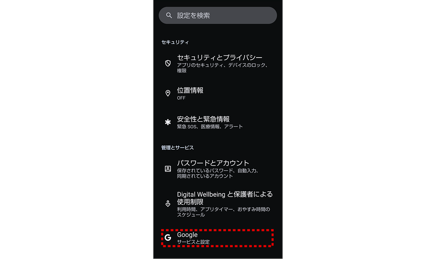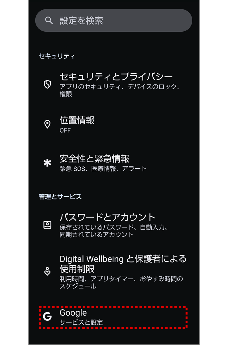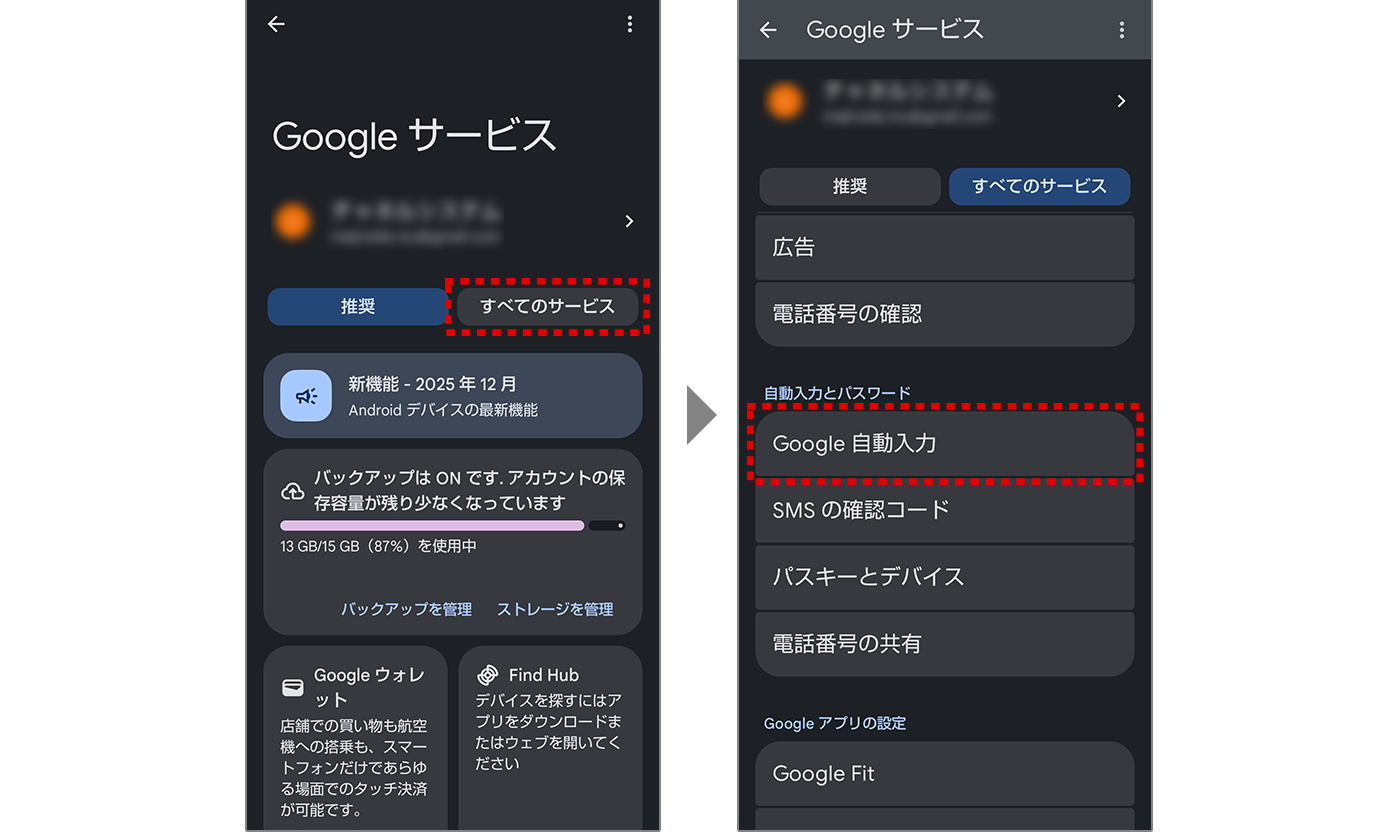3 【すべてのサービス】>自動入力とパスワード【Google自動入力】をタップしてください。