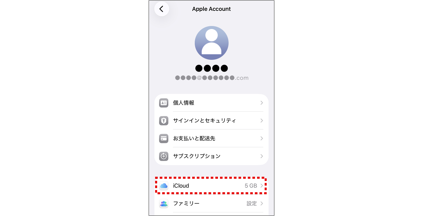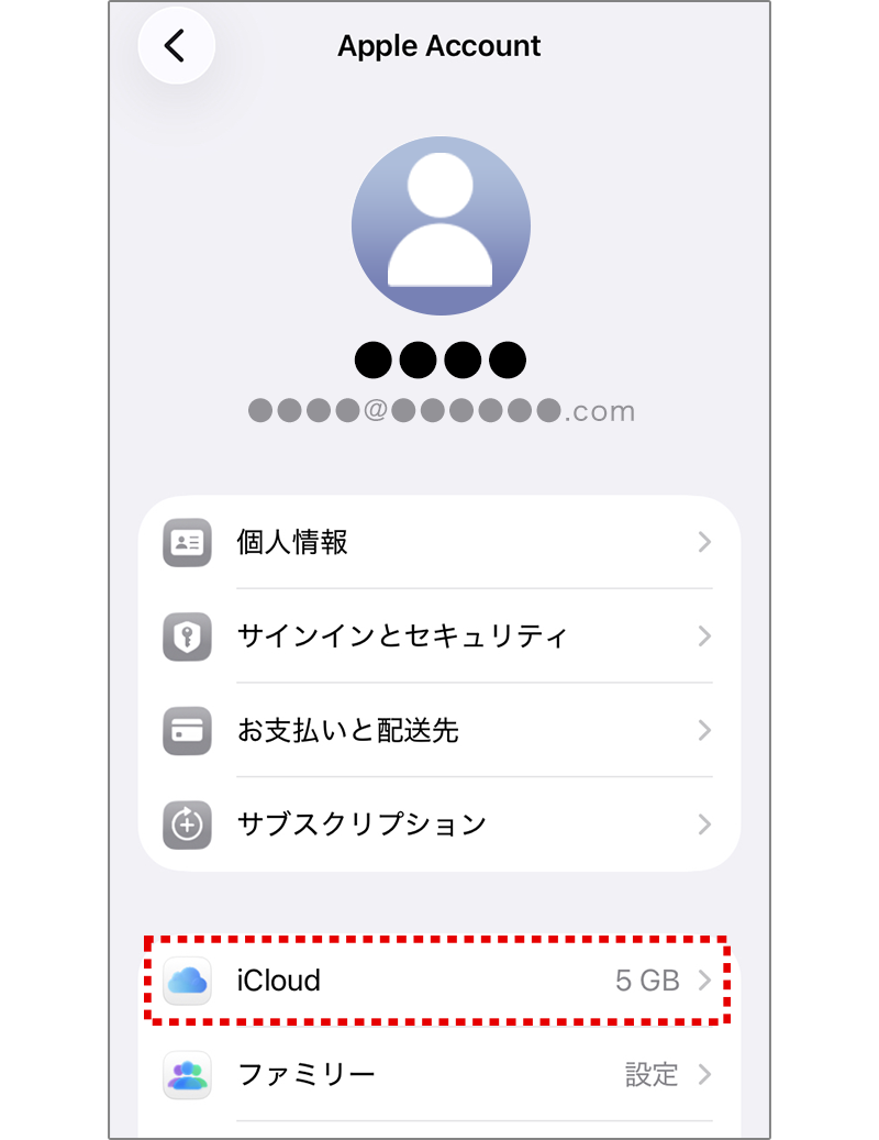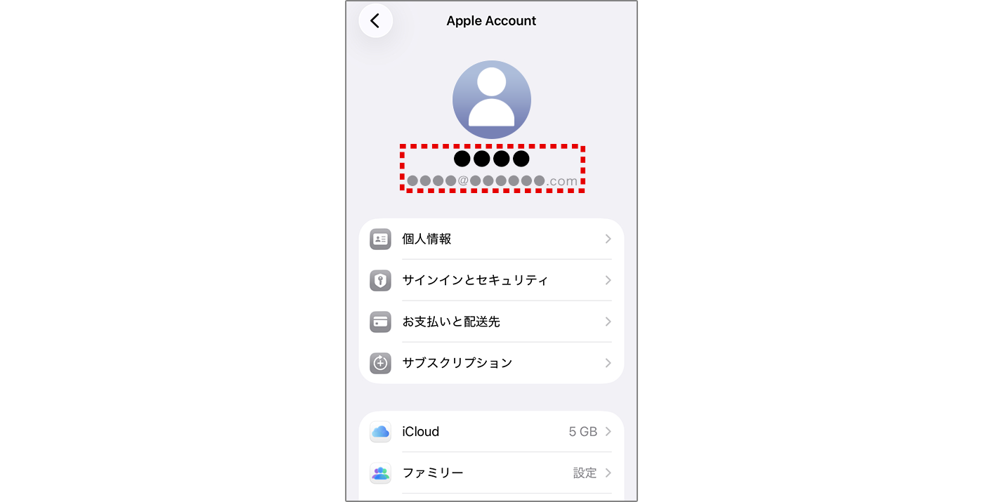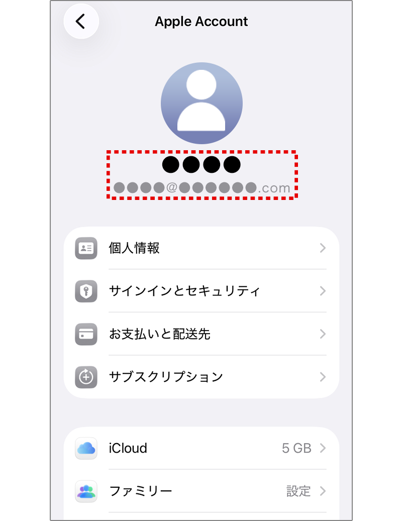 3 Apple Account(お名前やアドレス)が表示されていることを確認してください。