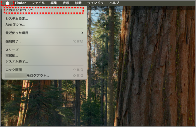 1. 1 お使いのPCで「Appleメニュー」>「このMacについて」へ進んでください。