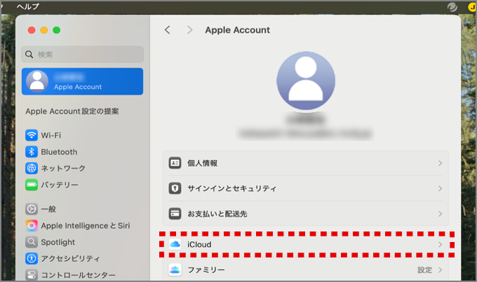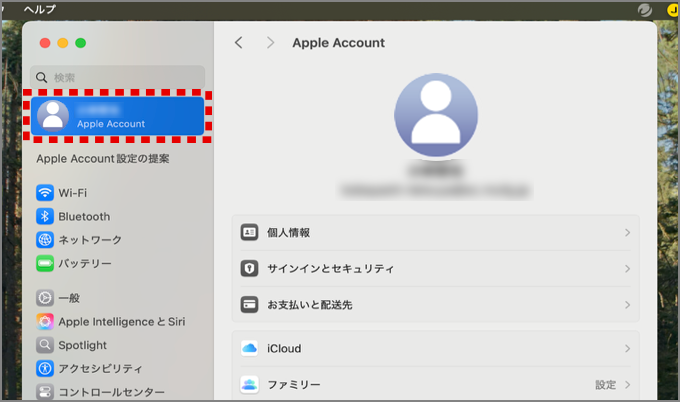 2. 2 ログイン済みのAppleアカウントが表示されていることを確認してください。