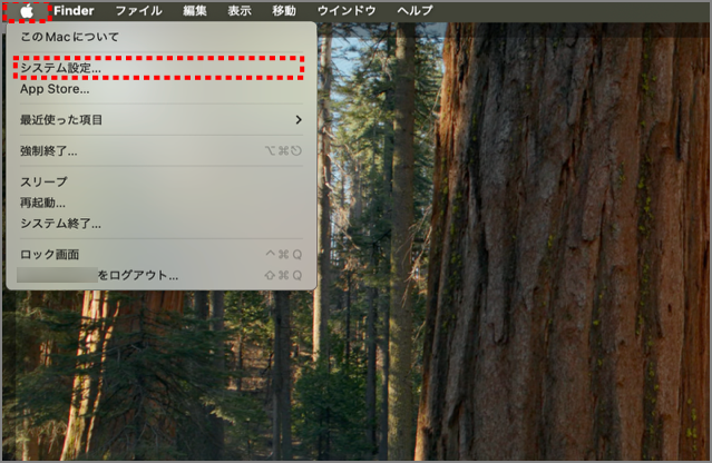 1. 1 お使いのPCで「Appleメニュー」>「システム設定」へ進んでください。