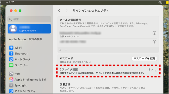 パスキーの登録には、Apple Accountに二要素認証の設定が必要です。